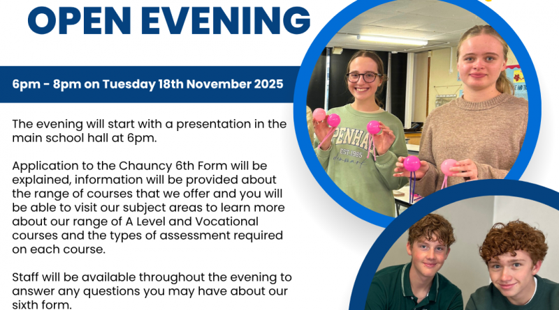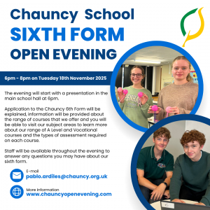 CHAUNCY SCHOOL SIXTH FORM OPEN EVENING – TUESDAY 18TH NOVEMBER 2025